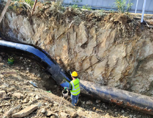 此次施工面臨雙重考驗:一方面,施工區(qū)域巖石硬度極高,破碎開挖難度遠超常規(guī)工程;另一方面,管網(wǎng)鋪設需趕在人行道施工前完成,一旦延誤,不僅會拖慢隨城山大道整體建設進度,還需額外破拆新建路面,造成工期延長與成本增加。面對“時間緊、任務重、難度大”的困境,水務集團城南項目部主動扛起責任,將其作為“民生攻堅硬仗”全力推進 。